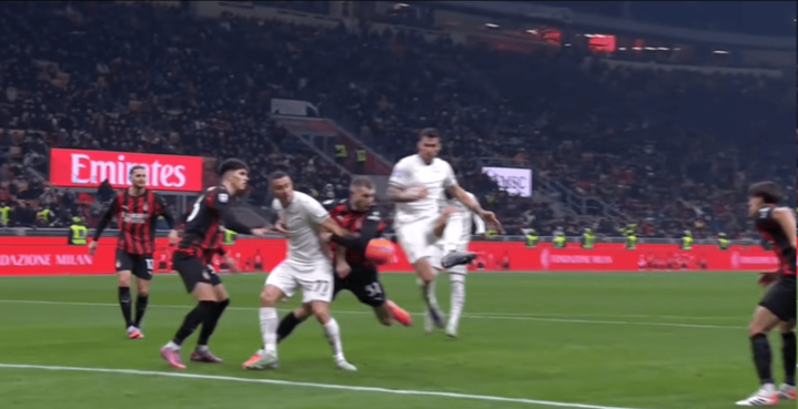 虎扑11月30日讯在刚刚结束的意甲第13轮比赛中,AC米兰主场1-0战胜拉齐奥,比赛最后时刻出现了争议一幕,罗马尼奥利的射门打在米兰中卫帕夫洛维奇的手臂上,不过当值主裁科卢在长时间观看Var复核后,决定不判罚点球,原因是客队前锋对弗拉霍维奇犯规在先。